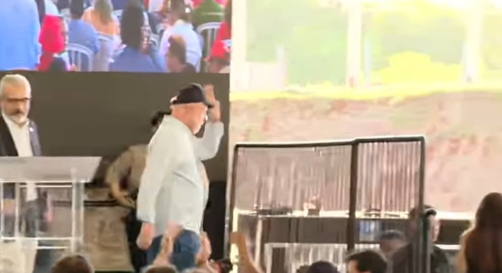 No fim, quando a transmissão ainda não captava áudio algum da fala do presidente, ele disse algo à plateia, entregou o microfone e saiu irritado. Foi ao encontro de militantes que estavam na lateral do palco.